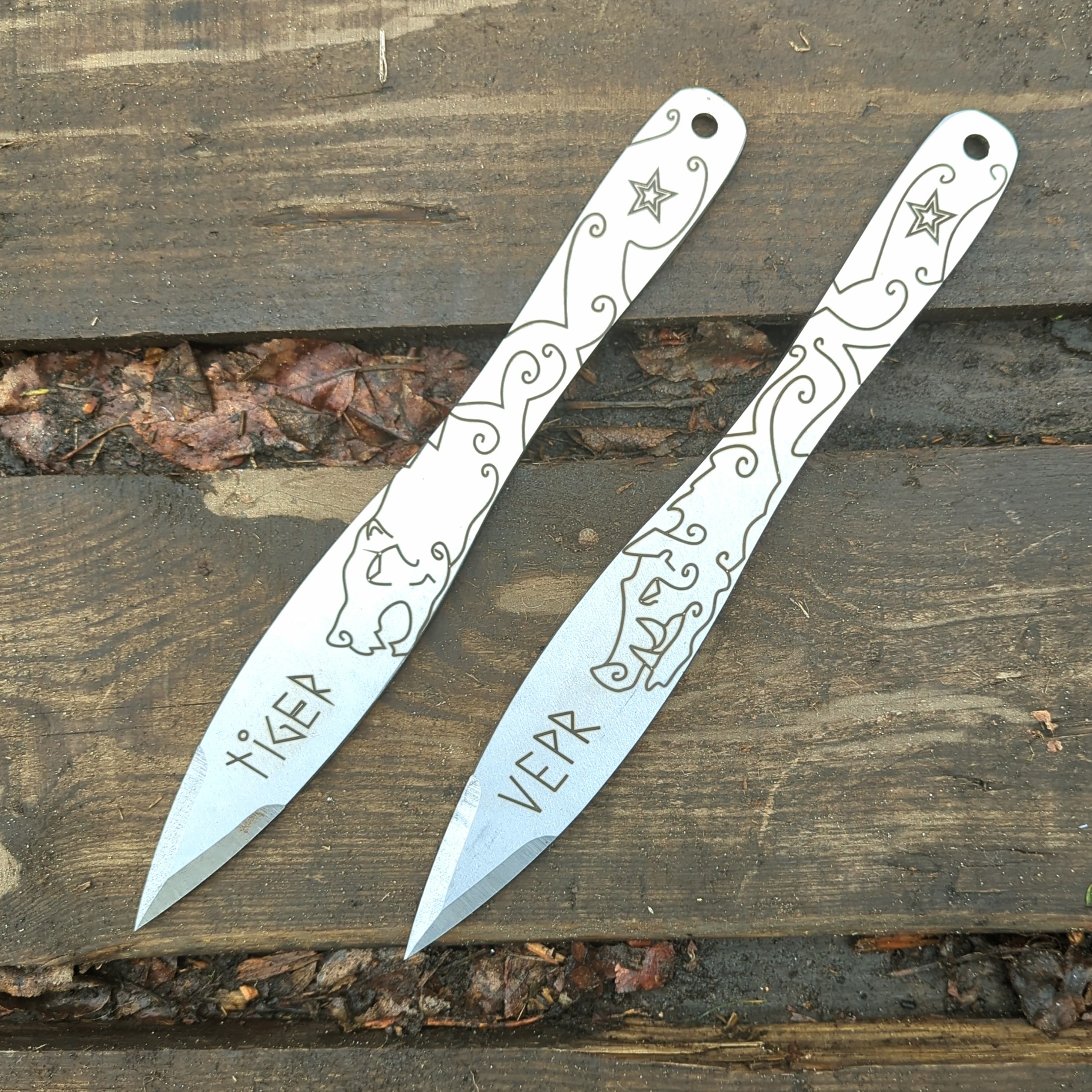 Le couteau de lancer « Leaf » gravé d'un tigre de NozhTop offre une expérience unique et puissante aux lanceurs expérimentés. Forgé en acier à ressort poli et gravé d'un motif de tigre audacieux, ce couteau allie beauté, robustesse et performance.